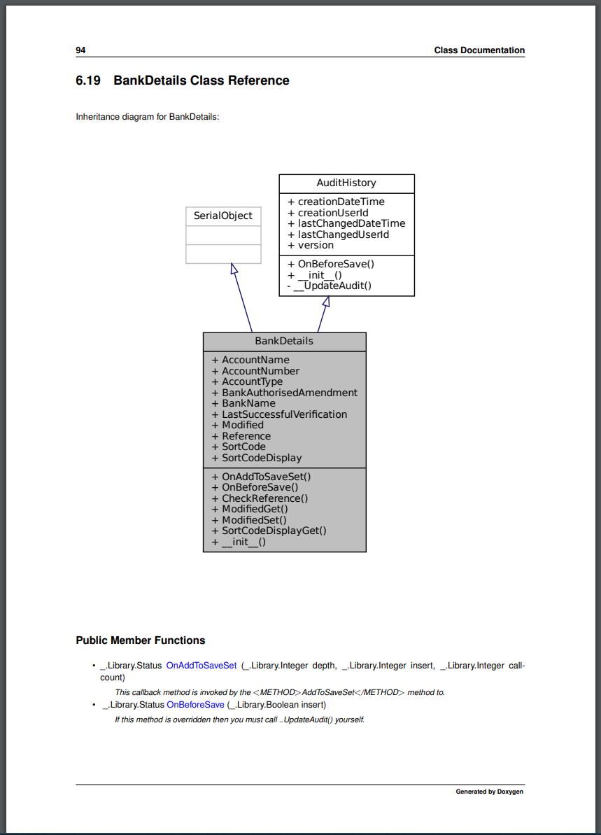 Um benefício de usar o Doxygenerate é que ele faz mais do que um simples output HTML. Altere o arquivo Doxyfile que informa ao Doxygen o que fazer e você poderá facilmente criar um PDF. Nosso exemplo de aplicação MARINA gerou um PDF de 524 páginas. Aqui está a página 94: