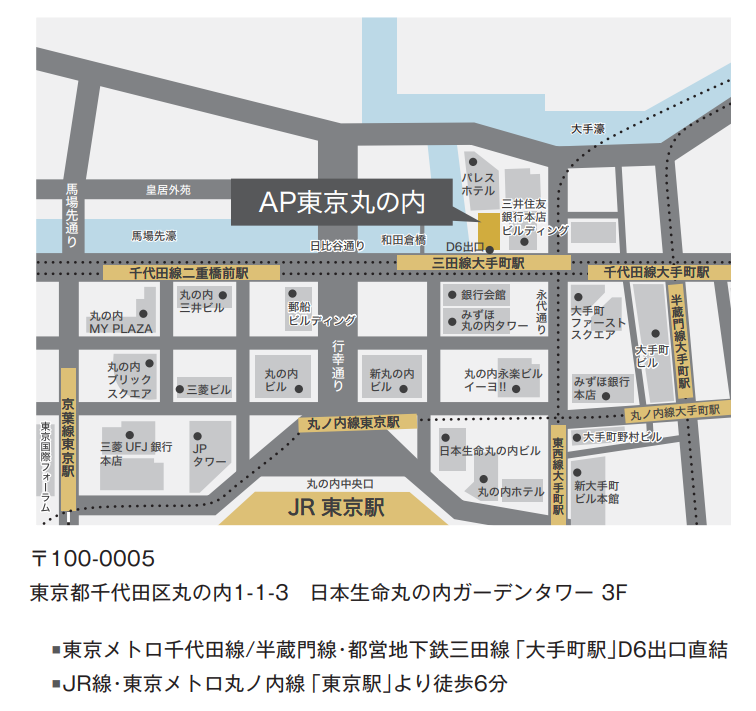 場 所:AP東京丸の内(日本生命丸の内ガーデンタワー 3F) 🌏Map
