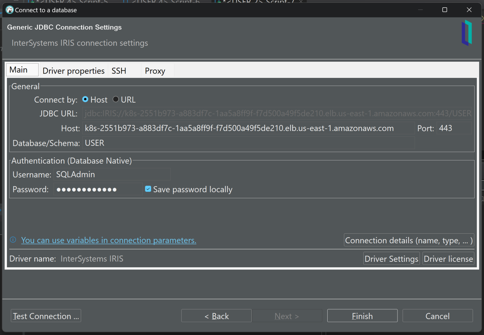 "jdbc:IRIS://k8s-092c0f86-acbb1223-47d44444fb-7667ad082a377a9e.elb.us-east-1.amazonaws.com:443/USER";