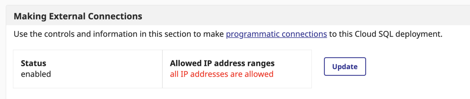 First, log into the Cloud Services Portal and create a Cloud SQL deployment. The one thing you need to be mindful of is to check the box to enable external connections. Other than that, all the default settings should work fine.