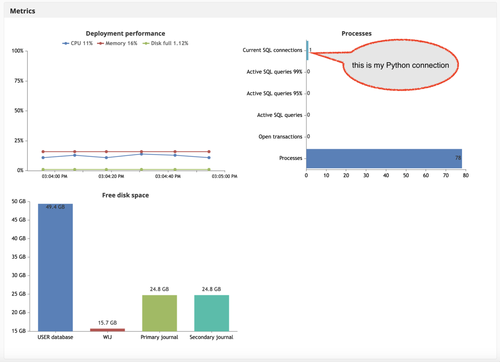 And quite amazingly, in the metrics I see 43 SQL connections :