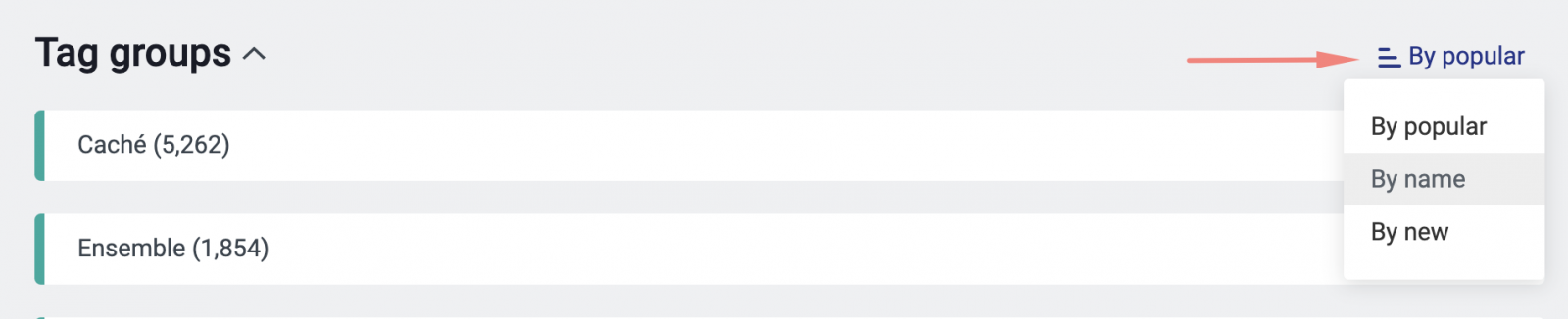 Selecionando este tipo de ordenação os Grupos e Tags mais recentes serão exibidos primeiro.