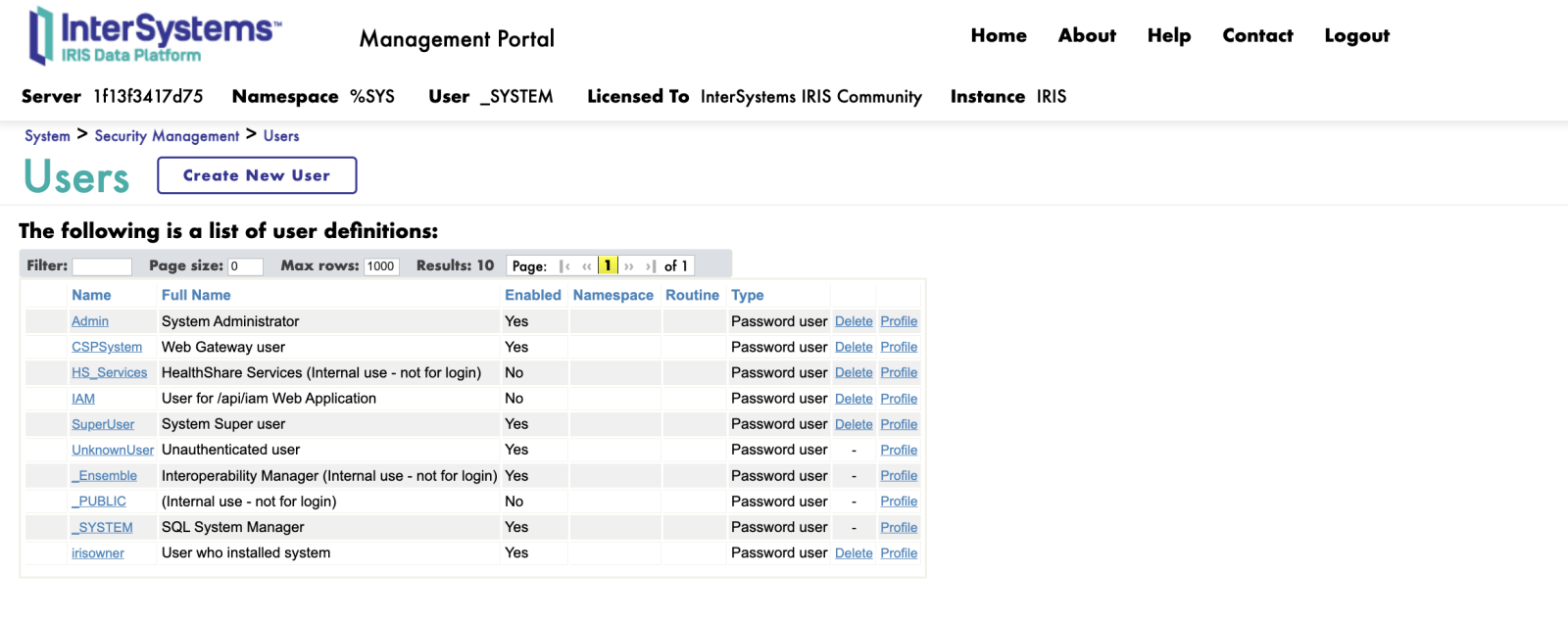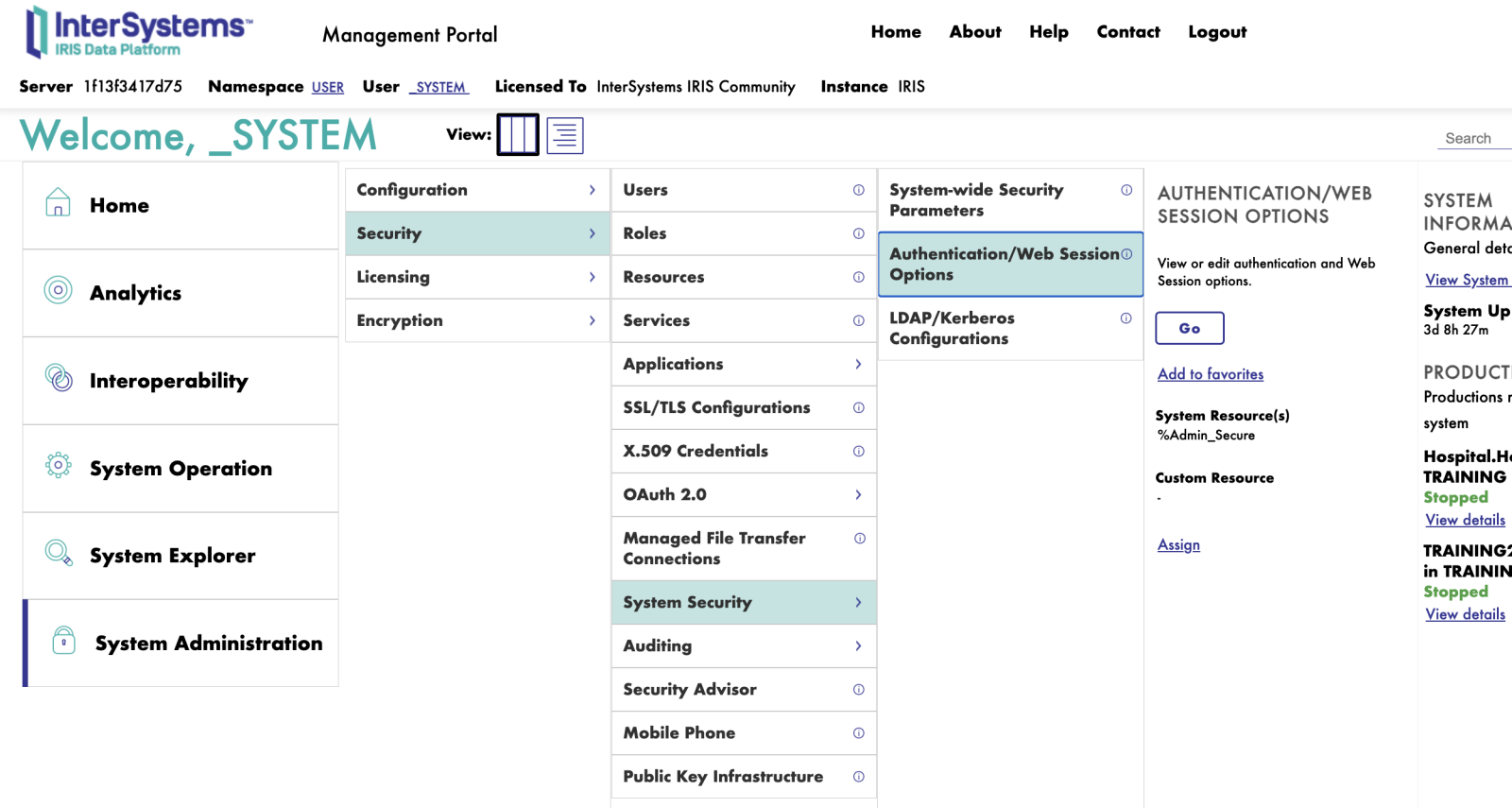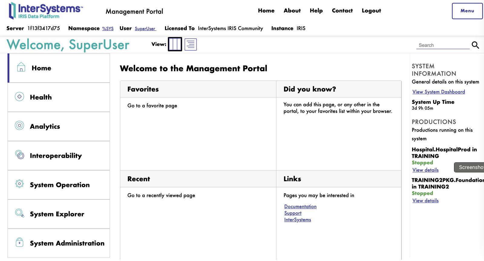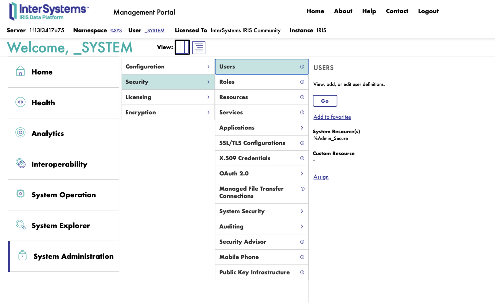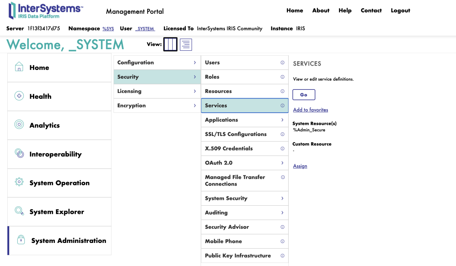 - Acesse o portal do Intersystems IRIS.