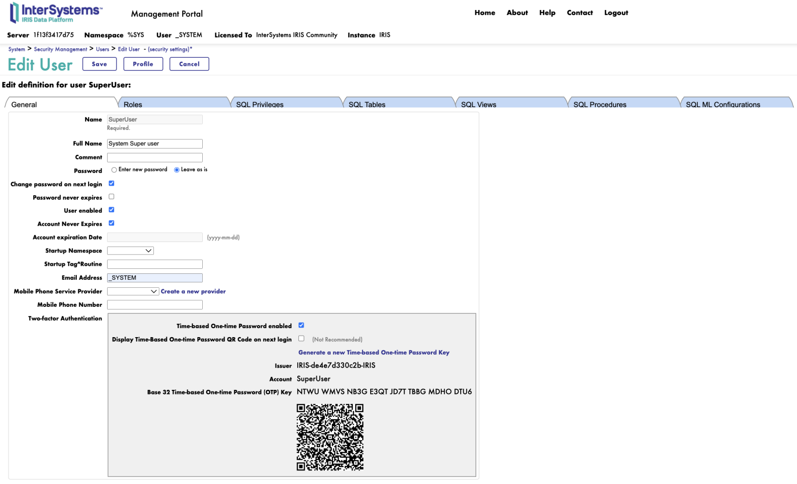 - Acesso ao Sistema: Você deve ter acesso administrativo ou o acesso privilegiado necessário ao ambiente InterSystems IRIS onde pretende configurar a autenticação de dois fatores.