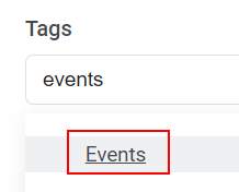 Primeiro de tudo, você precisa escolher a tag Eventos