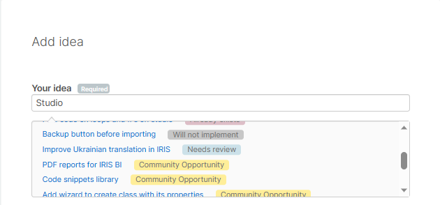 Aqui está um breve artigo sobre como criar uma ideia no InterSystems Ideas.