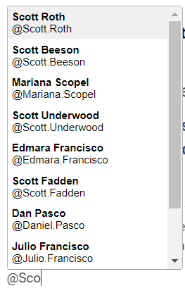 Por exemplo, se você começar a digitar "@Sco", você verá uma lista com as possibilidades: