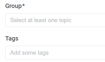 Após o campo Grupo, há um campo Tags onde você pode adicionar tags relacionadas ao conteúdo do seu post. Existem várias tags, então escolha com responsabilidade, porque outras pessoas usam essas tags para procurar ou classificar as informações quando estão pesquisando algo.