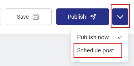 Além disso, você pode agendar uma publicação do seu post. Basta clicar na seta para baixo, escolher Agendar postagem e definir a data e a hora.