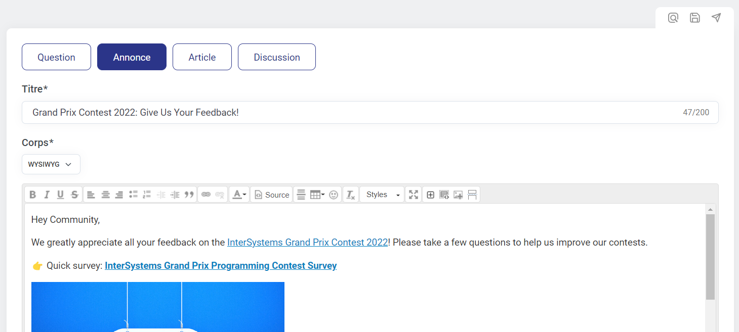 ➡️ Dê um clique no botão "Translate" e uma nova aba abrirá com o formulário para que seja criada uma nova postagem na Comunidade regional.