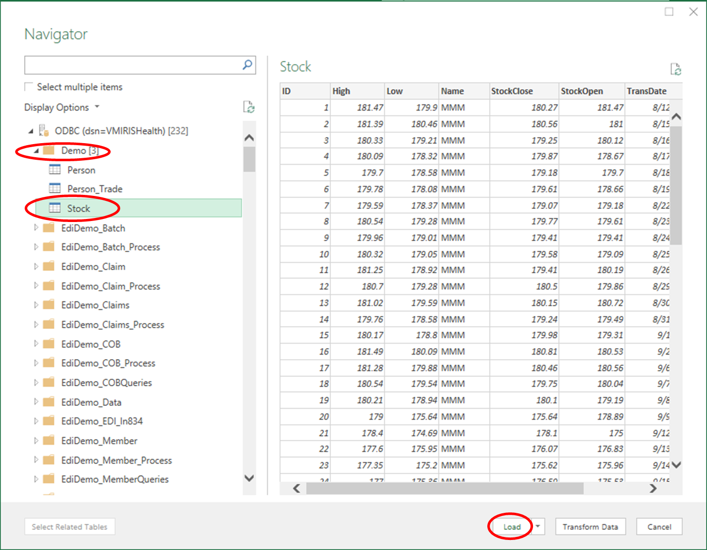 No Navigator, selecione a tabela que você quer conectar e clique em "Load" (Carregar):