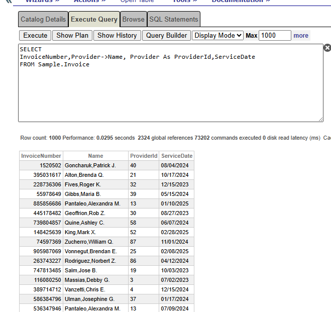 InvoiceNumber,Provider->Name, Provider As ProviderId,ServiceDate