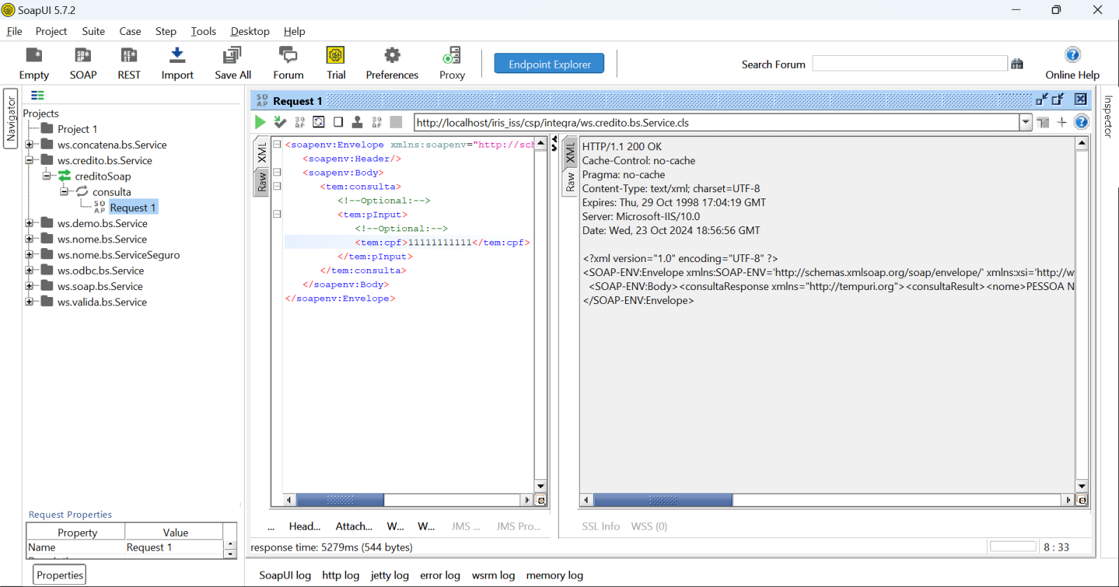 Lembre-se que podemos colocar o TCPTRACE para verificar o tráfego que ocorre entre o SoapUI e o nosso BS, o que é especialmente útil em situações de teste.