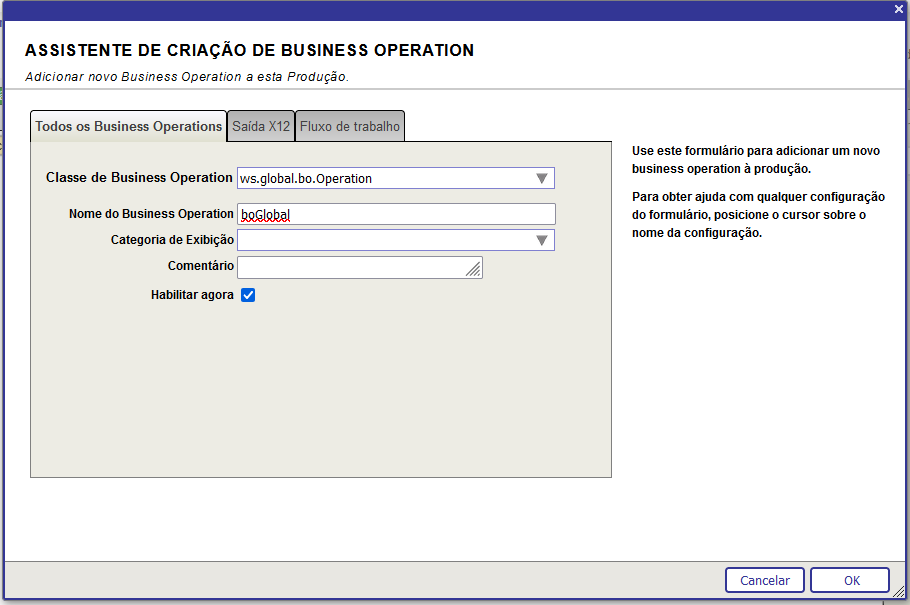 Agora vamos passar para o nosso BO. O processo é o mesmo, ou seja, clique no botão (+) ao lado do título Operations e preencha a tela que será apresentada: