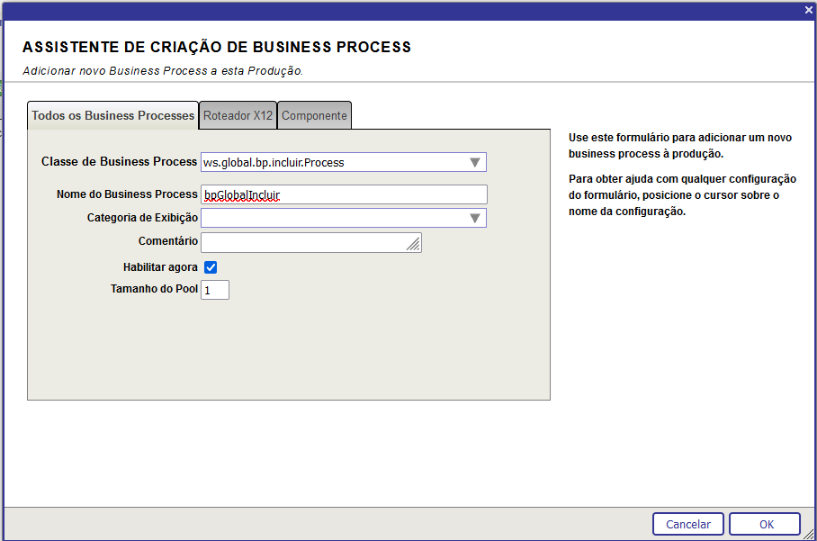 Agora, por fim, vamos montar nosso BP, que é o orquestrador das chamadas da integração.