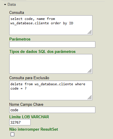 Agora, ainda na configuração do BS vá em Data e preencha conforme a seguir:
