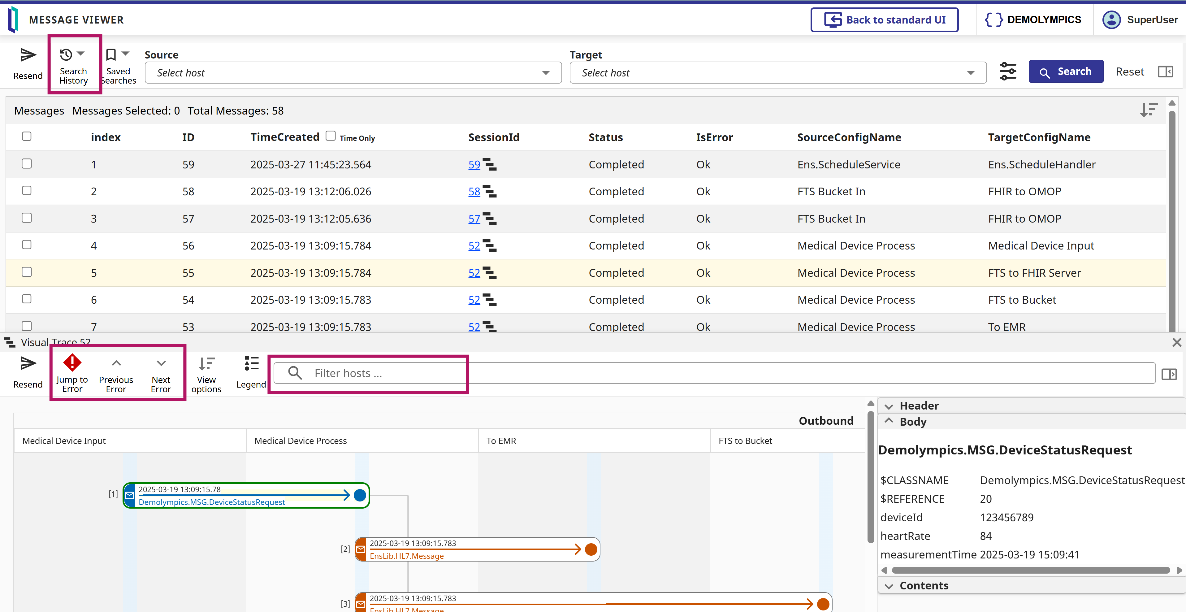 Como parte da nova onda de UI de Interoperabilidade (veja as novidades de 2025.1, e 2025.3 por @Aya Heshmat), v2026.1 já disponível como Developer Preview , pode ser um bom motivo para você experimentá-la. Ela traz a nova interface para visualização e busca de mensagens, incluindo o Rastreamento Visual (e outras melhorias visuais).
