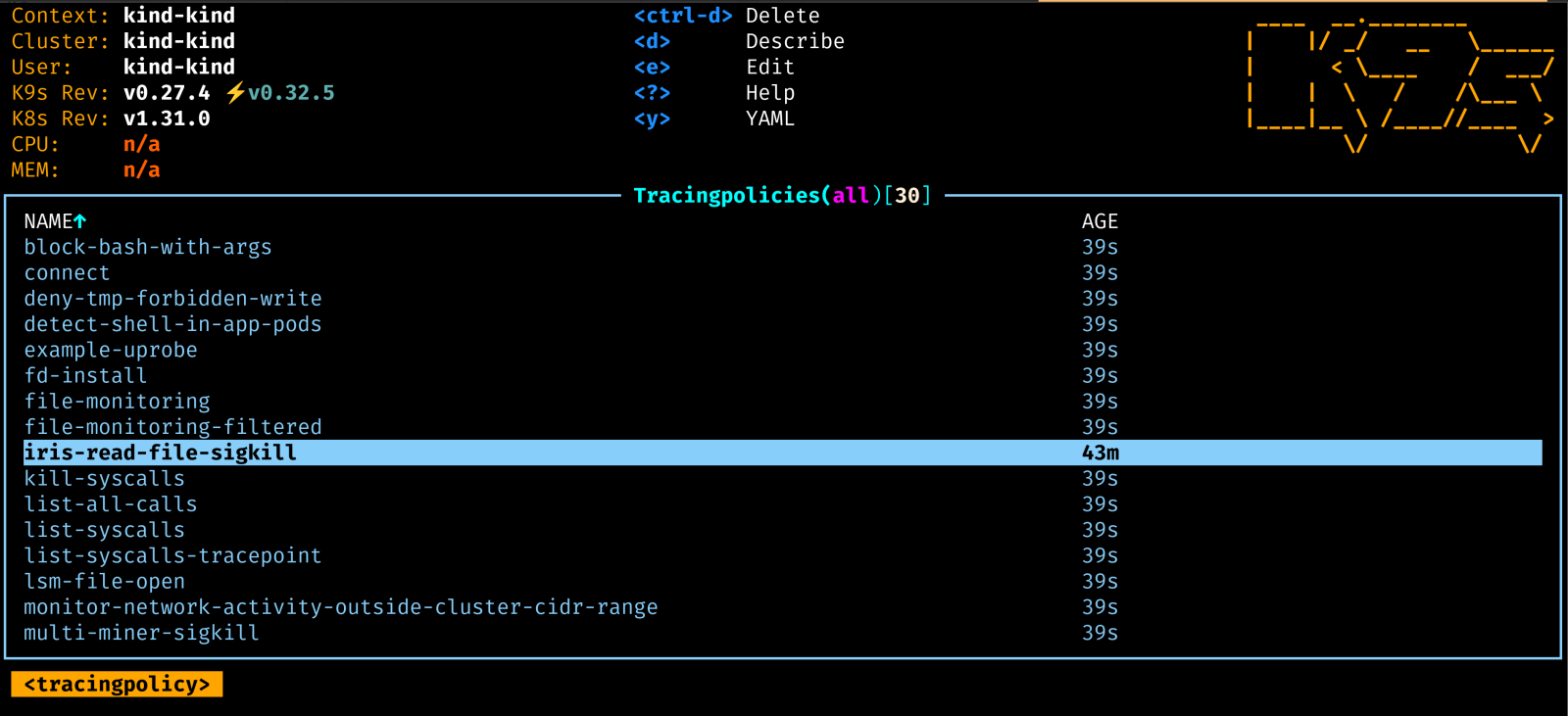EOFUma vez implantado, você deve vê-lo carregado como um recurso TracingPolicy:
