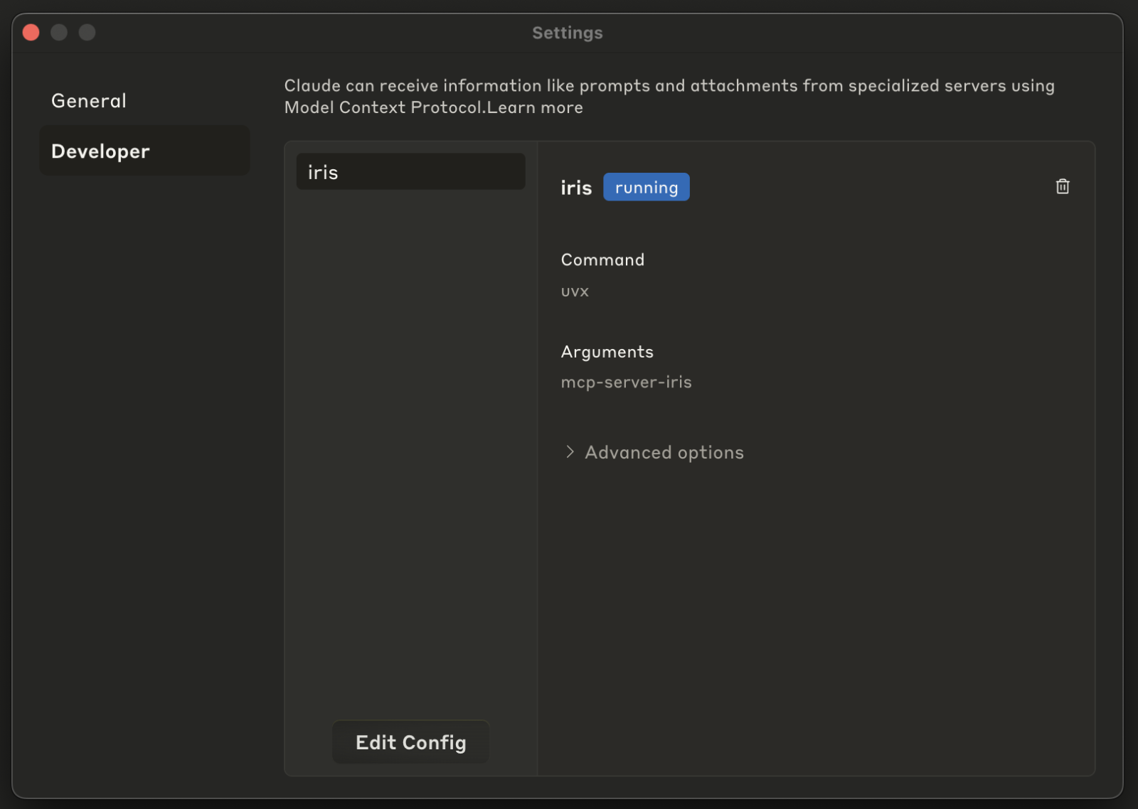 As configurações do Claude na seção de Desenvolvedor podem ajudar a encontrar um arquivo de configuração