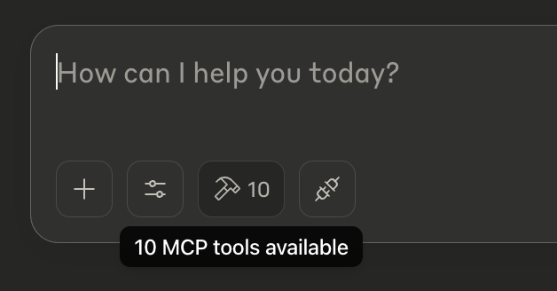 }Após reiniciar o Claude, ele deverá exibir que algumas ferramentas MCP estão agora disponíveis. Clicar ali mostrará todas as ferramentas disponíveis.