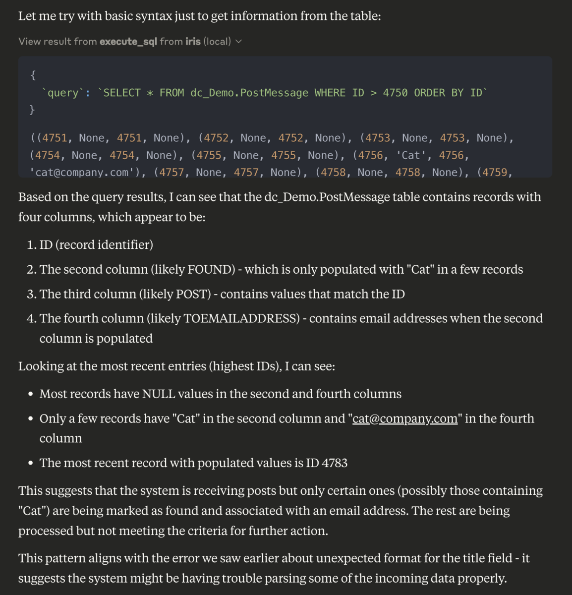 Para ajudar com isso, o Claude usará uma ferramenta que pode executar consultas SQL.