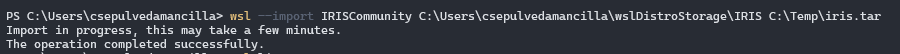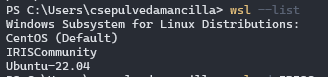 Use o comando wsl -d IRISCommunity para executar sua distribuição Linux recém-importada.