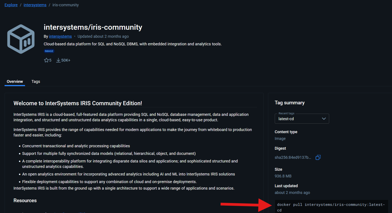 Você pode encontrar o comando de pull exato diretamente na página do Docker Hub da imagem:.png)