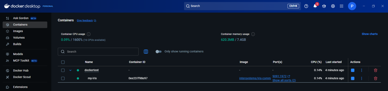 Assim que a imagem do InterSystems IRIS for obtida (pulled) do Docker Hub, você pode executá-la dentro de um container.