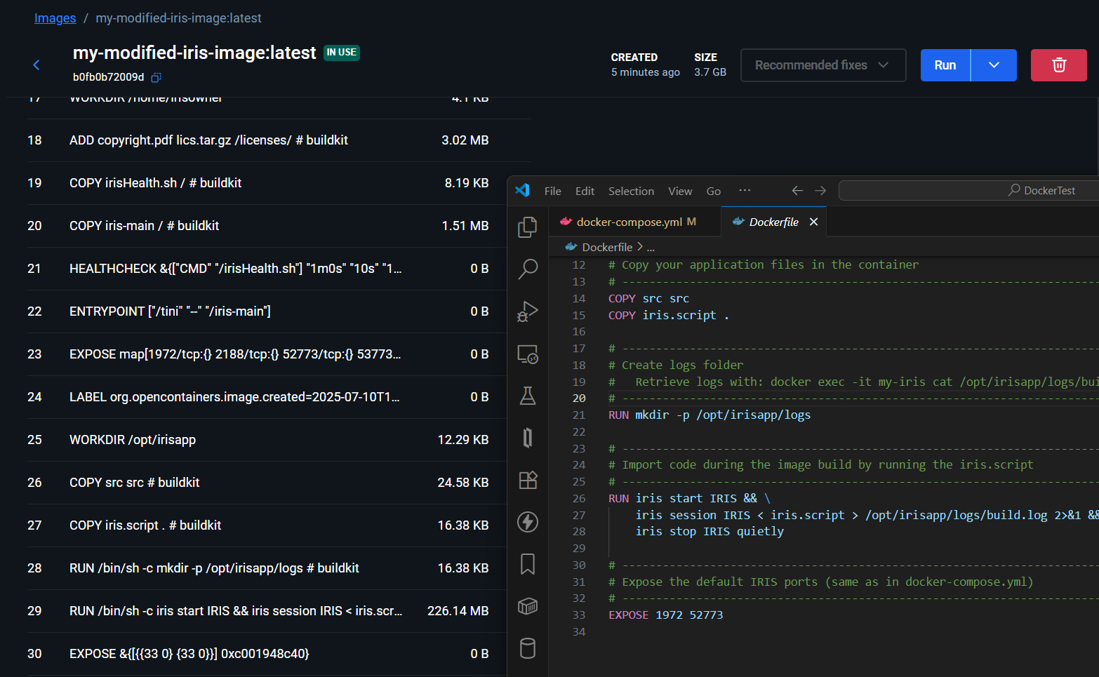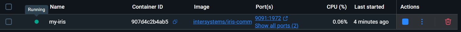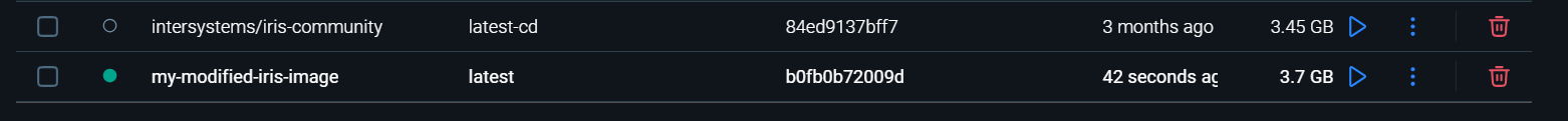 USER>No Docker Desktop, você poderá ver que uma nova imagem chamada my-modified-iris-image foi criada e está rodando ao lado da imagem oficial base.