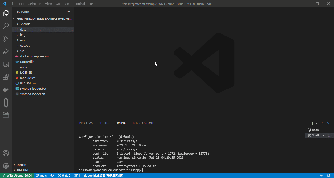 docker exec -it fhir-integratedml-example_iris_1 bashDentro do shell do linux , crie uma sessão IRIS: