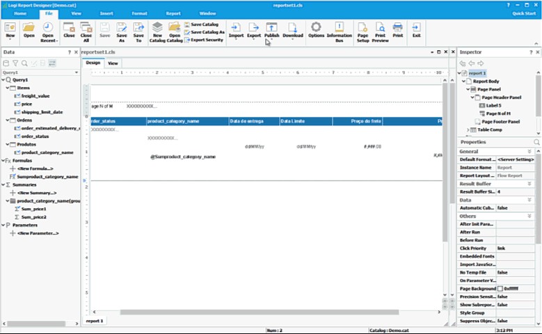 Pronto temos o relatório! O desenvolvedor pode fazer toda customização desejada no layout do relatório e visualizar o resultado antes de publicar para o usuário final.