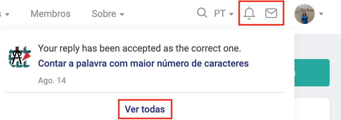 Ao clicar no link "Ver todas", você será redirecionado para uma página onde poderá ver todas as suas notificações