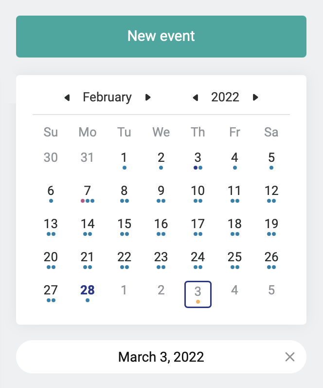Você também pode selecionar qualquer data no calendário reduzido a direita para descobrir qual evento está agendado ou ocorreu naquele dia: