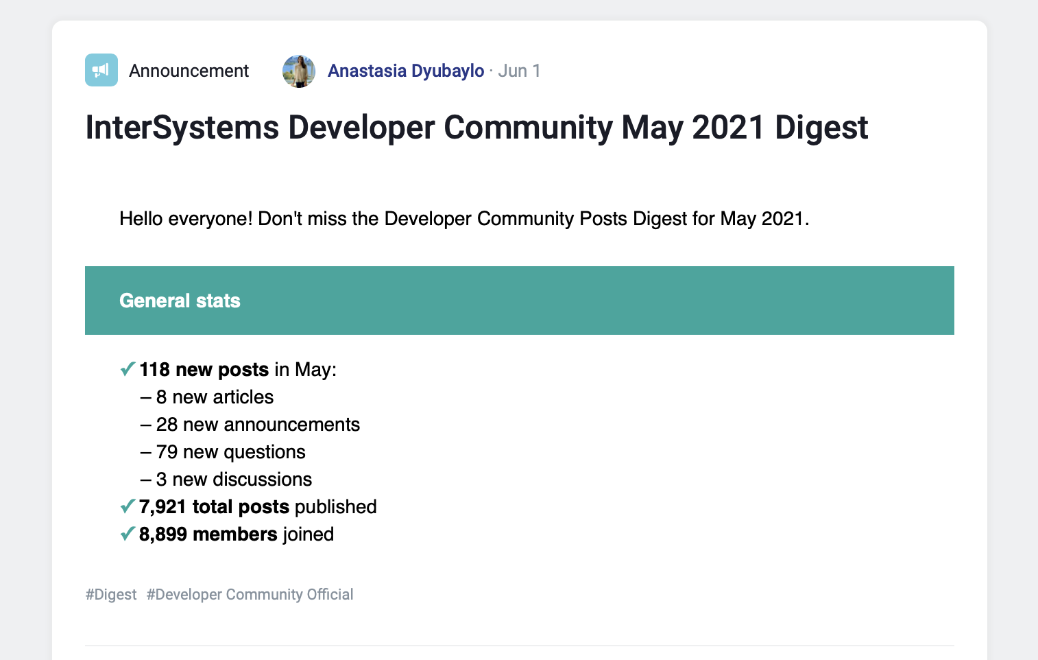 Este é um informativo de como melhoramos a Comunidade de Desenvolvedores no mês de Junho de 2021.