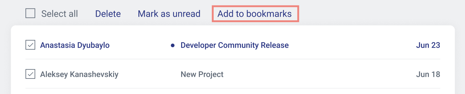 - Selecionando uma ou várias mensagens e clicando na opção "Adicionar aos Favoritos" no topo.