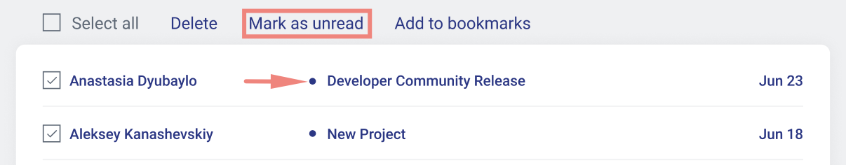 2. Você também pode transformar qualquer mensagem para não lida, de forma a poder acessá-la futuramente e respondê-la. Para isso, apenas selecione as mensagens que você quer e clique no botão "Marcar como não lido".