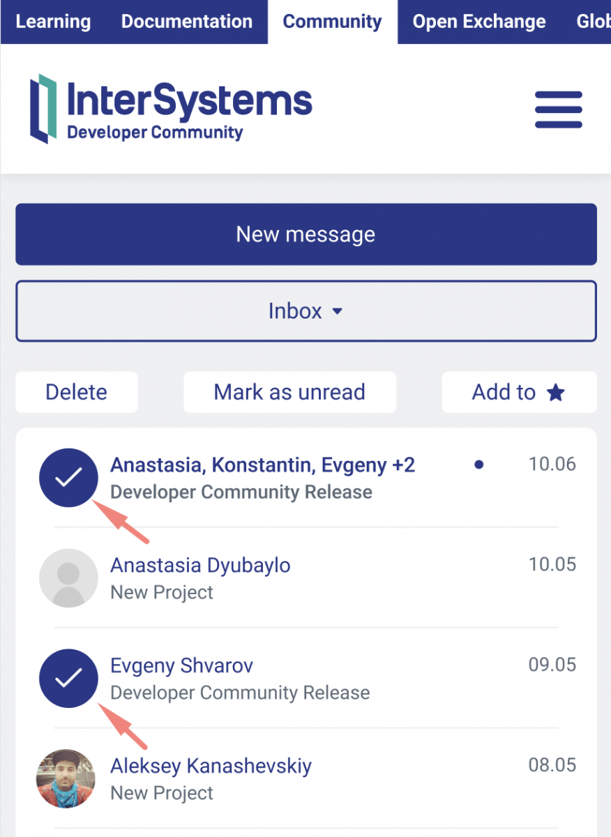 Você pode de maneira simples selecionar mensagens clicando no avatar do usuários para utilizar as novas funcionalidades no menu superior. Alterne entre as abas no menu suspenso.
