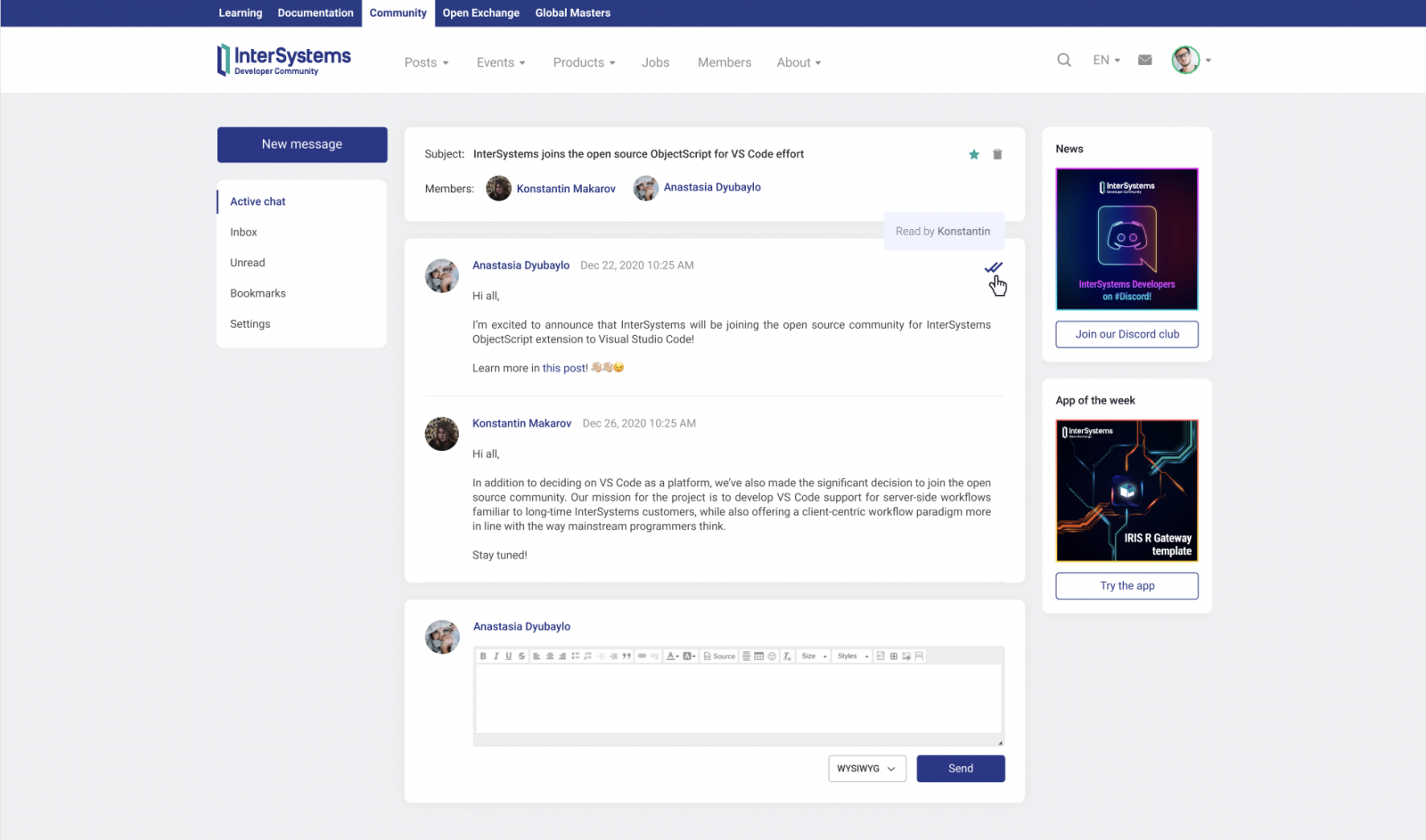 Apenas imagine uma ferramenta de mensagens completa dentro da Comunidade – nossos membros agora podem, de forma simples, se comunicar entre si através das Mensagens Diretas (DM), criar conversas para vário membros, bater papo sobre assuntos específicos, etc.