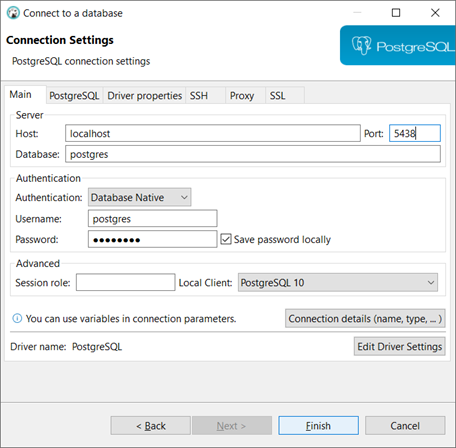 4. Preencha a conexão com o PostgreSQL como nesta figura: