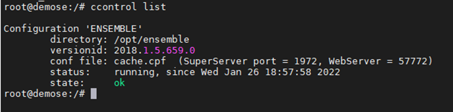1. Você pode verificar aqui uma primeira mudança de comando, ao invés de utilizar o ccontrol list, agora você executará o iris list para verificar a instância.