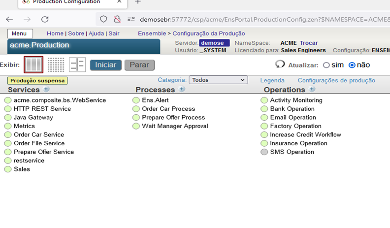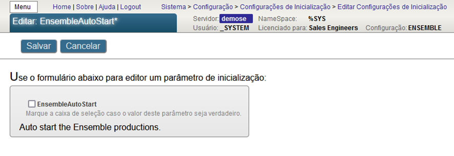 1. O primeiro passo para ambientes Ensemble é desativar o início automático da Produção: