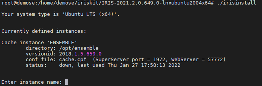 No diretório onde você extraiu o kit de instalação, execute: irisinstall