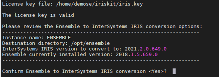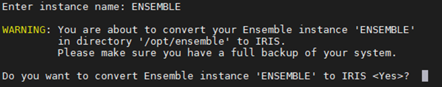 Ao digitar o nome da instância, o instalador questionará sobre a atualização para IRIS: