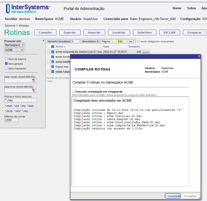 Primeiro vamos compilar as rotinas. Lembre-se que você pode compilar as rotinas pelo portal ou pelo terminal.