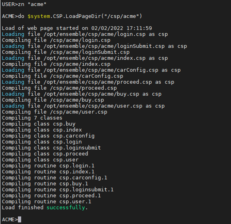Também é possível executar a compilação de todas as rotinas em todos namespaces, executando: