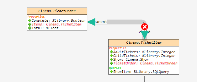 Se você apontar o cursor sobre a relação, as propriedades que criam essa relação serão destacadas: