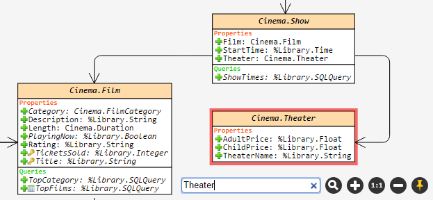Se um diagrama for muito grande e desconhecido para você, você pode usar uma função de pesquisa rápida de diagrama. A classe contendo qualquer parte da palavra-chave que você inseriu será destacada. Para pular para a próxima correspondência, basta pressionar Enter ou clicar no botão de pesquisa novamente: