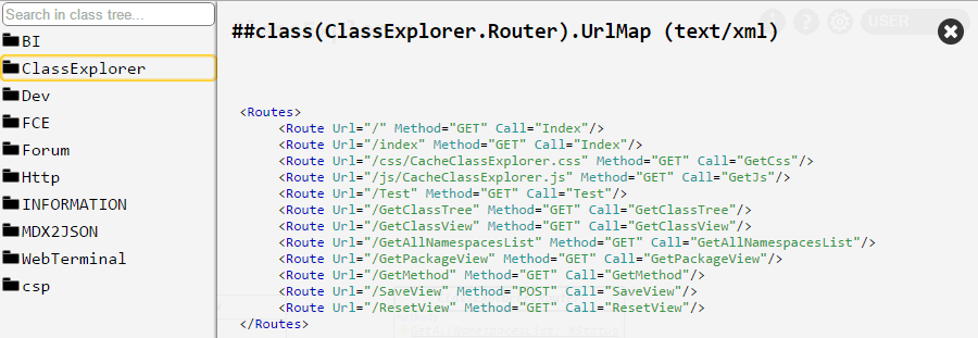 Para instalar o Caché Class Explorer, você só precisará importar o pacote xml da versão mais recente para qualquer namespace. Assim que a importação for concluída, você poderá notar que o novo aplicativo web chamado hostname/ClassExplorer/ (a barra no final é obrigatória) apareceu.