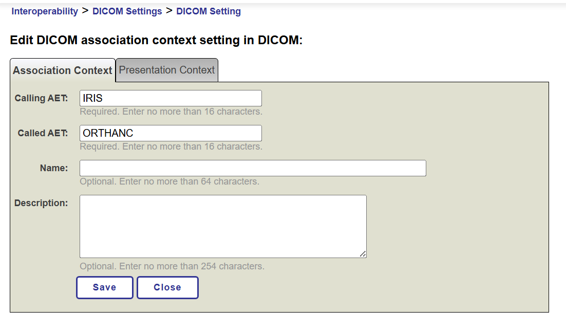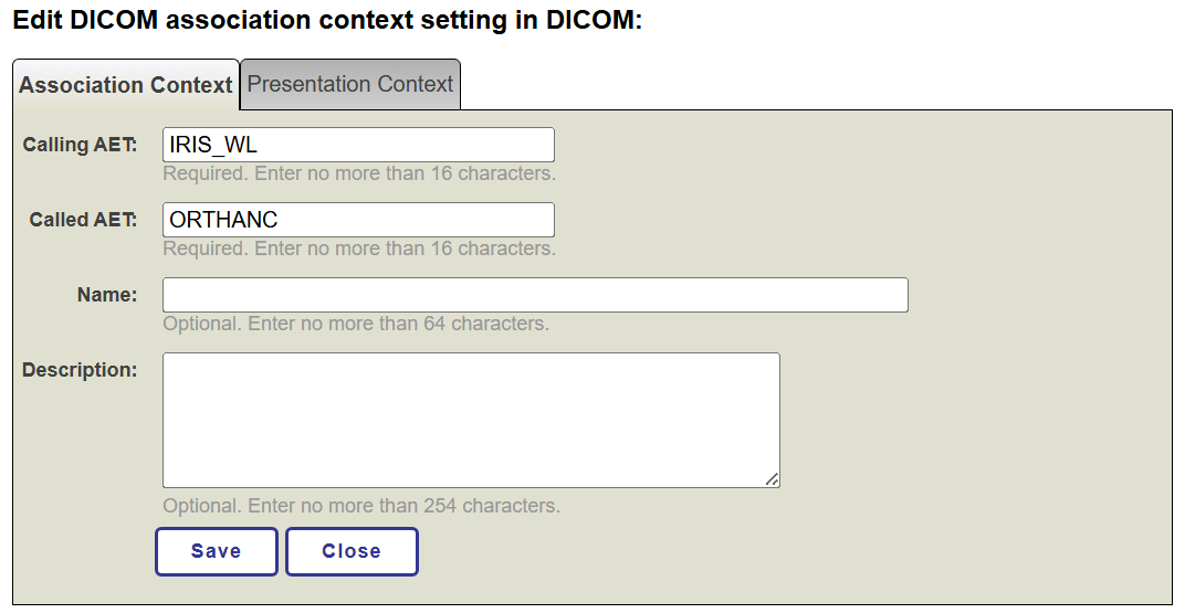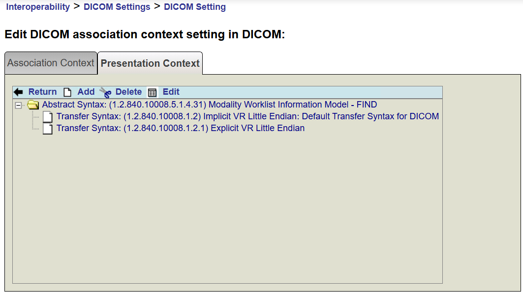 E, além disso, na opção Presentation Context, definimos a Abstract Syntax mencionada:
