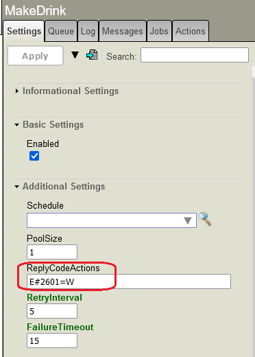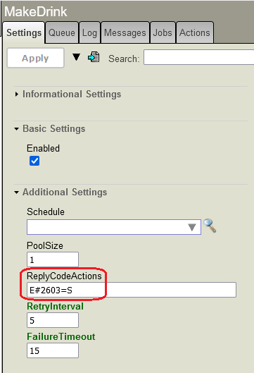 De uma maneira similar às importações de código, o suporte pode gerenciar os erros de código em tempo de execução configurando o código de ação de resposta E#2603.